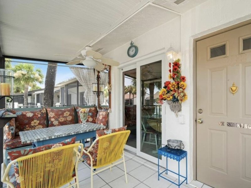 Sie hat einen durch Fliegengitter geschützten vorderen Lanai, der nach SÜDEN ausgerichtet ist.